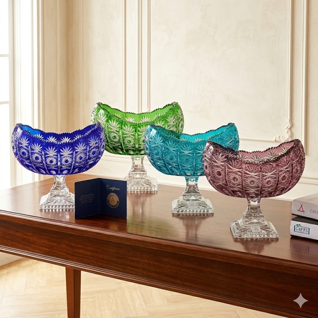 Bộ sưu tập Dresden gồm nhiều sản phẩm như bình hoa cao thấp, âu, đĩa và bộ ly, tất cả đều được chế tác từ pha lê cao cấp kết hợp với các điểm nhấn hoa văn tinh tế. Những món đồ này không chỉ là vật trang trí mà còn là biểu tượng của sự sang trọng và tinh tế, rất phù hợp để làm nổi bật không gian tiệc tùng. Đĩa pha lê màu đỏ trong bộ sưu tập là một tác phẩm nghệ thuật đầy cuốn hút, góp phần làm bàn ăn thêm phần đẳng cấp và ấm cúng.