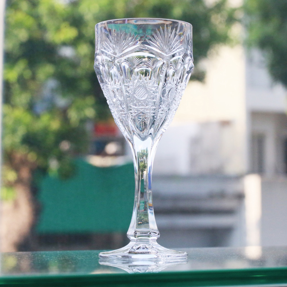 Điểm đặc biệt của ly nằm ở phần thân ly được mài hoa văn hình học và họa tiết tỏa sao. Các đường cắt sâu tạo hiệu ứng lấp lánh rất mạnh khi có ánh đèn hoặc ánh nắng chiếu vào. Khi rót rượu vào ly, màu rượu và ánh sáng phản chiếu qua các mặt cắt pha lê tạo hiệu ứng thị giác rất đẹp – đây chính là giá trị của ly pha lê mài mà ly thủy tinh hoặc ly trơn không có.