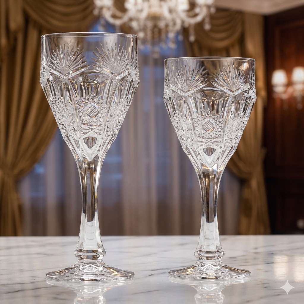 Ly rượu vang Safari Mài SAFARI-57030 là dòng ly pha lê mài thủ công nổi bật của Crystal Bohemia, mang phong cách quý tộc châu Âu với các họa tiết cắt sâu, sắc nét và phản chiếu ánh sáng rất mạnh. Đây là dòng ly không đi theo phong cách hiện đại tối giản, mà thiên về phong cách sang trọng cổ điển – thường xuất hiện trong các bàn tiệc trang trọng, phòng ăn phong cách châu Âu hoặc tủ trưng bày pha lê.