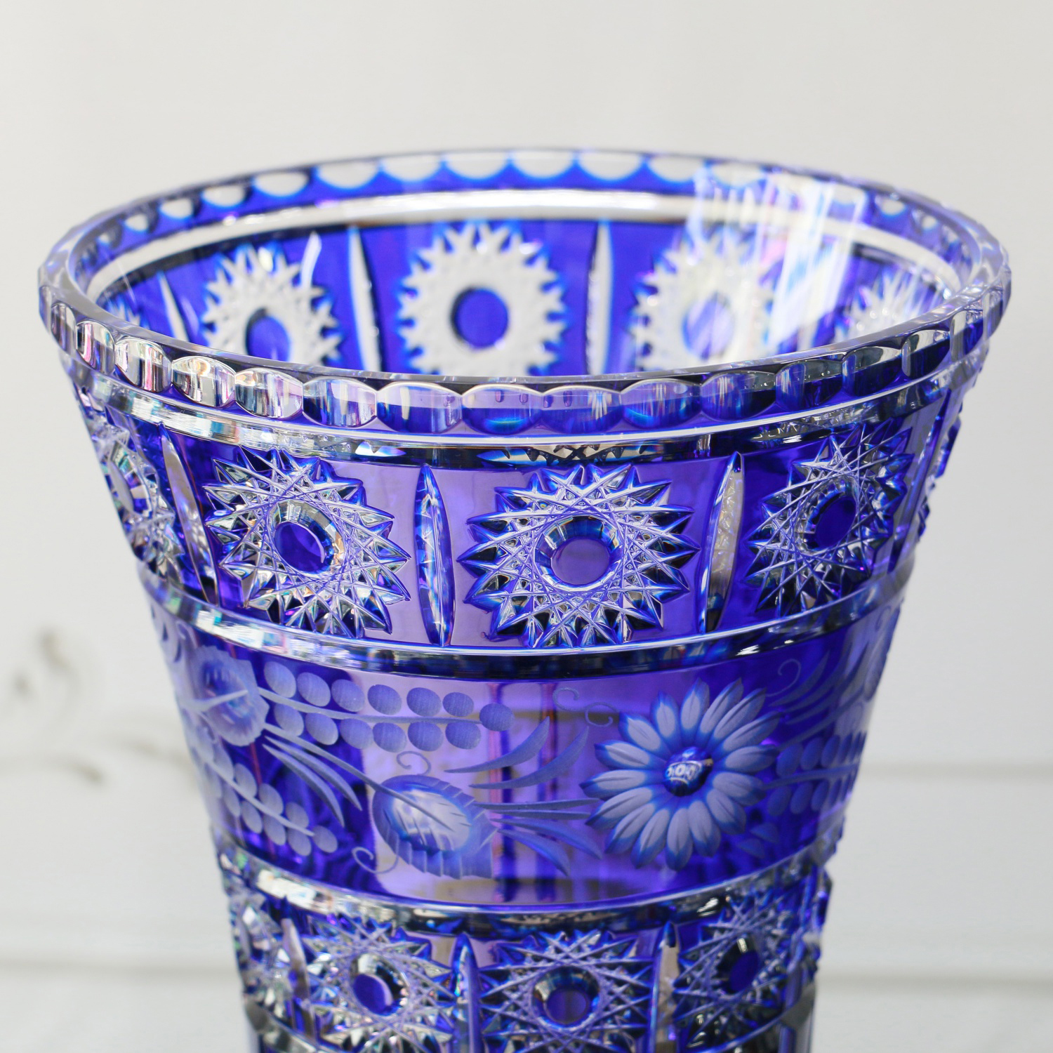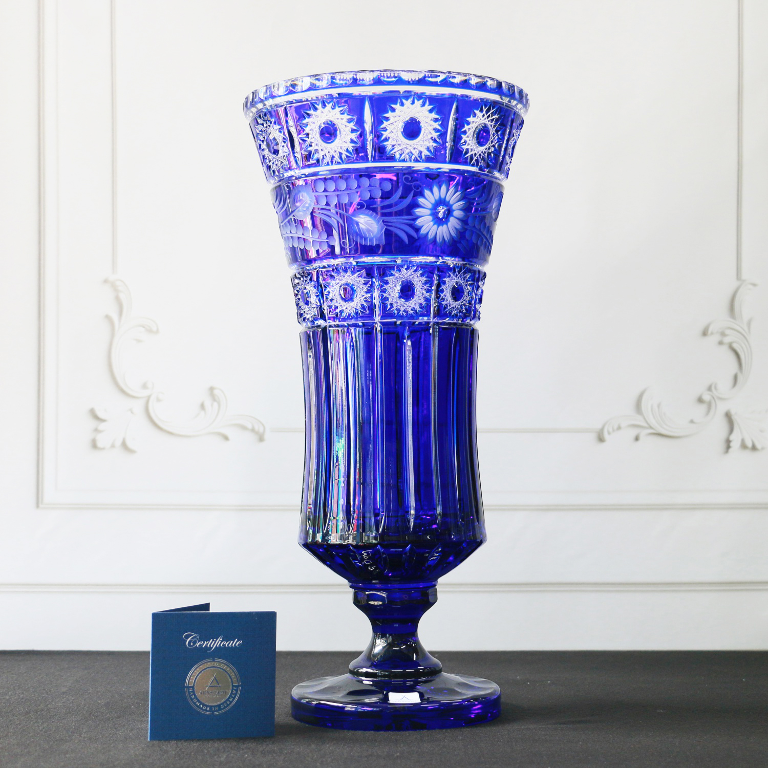 Kỹ thuật mài 3D trứ danh của Arnstadt Kristall đã biến bề mặt bình thành một bức tranh ánh sáng sống động. Từng họa tiết hoa văn không chỉ được cắt khắc chính xác mà còn mang chiều sâu, tạo hiệu ứng thị giác huyền ảo khi thay đổi góc nhìn. Có thể nói, mỗi chiếc bình hoa Madline là kết tinh của hàng trăm giờ lao động thủ công tinh vi, nơi nghệ nhân thổi hồn vào chất liệu vô tri để tạo nên một kiệt tác nghệ thuật sống động.