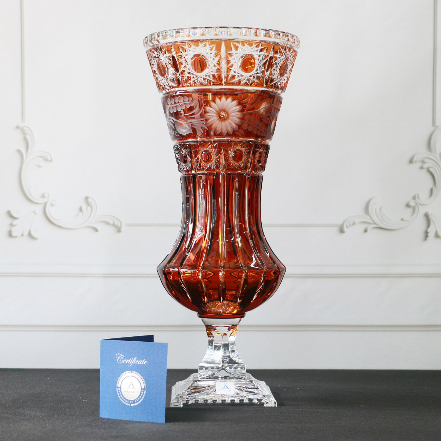 Arnstadt Kristall là một trong những thương hiệu pha lê điêu khắc danh tiếng nhất nước Đức, được thành lập vào năm 1947 bởi nghệ nhân bậc thầy Heinrich Arlt. Khởi đầu từ một xưởng thủ công nhỏ tại thị trấn Arnstadt, thương hiệu đã không ngừng phát triển và khẳng định vị thế trên thị trường quốc tế nhờ tay nghề chế tác pha lê thủ công tinh xảo bậc nhất châu Âu. Ngày nay, Arnstadt Kristall được xem là biểu tượng của nghệ thuật pha lê sang trọng, với các sản phẩm hiện diện tại hơn 50 quốc gia – nơi tôn vinh giá trị thủ công, thẩm mỹ và đẳng cấp vượt thời gian.