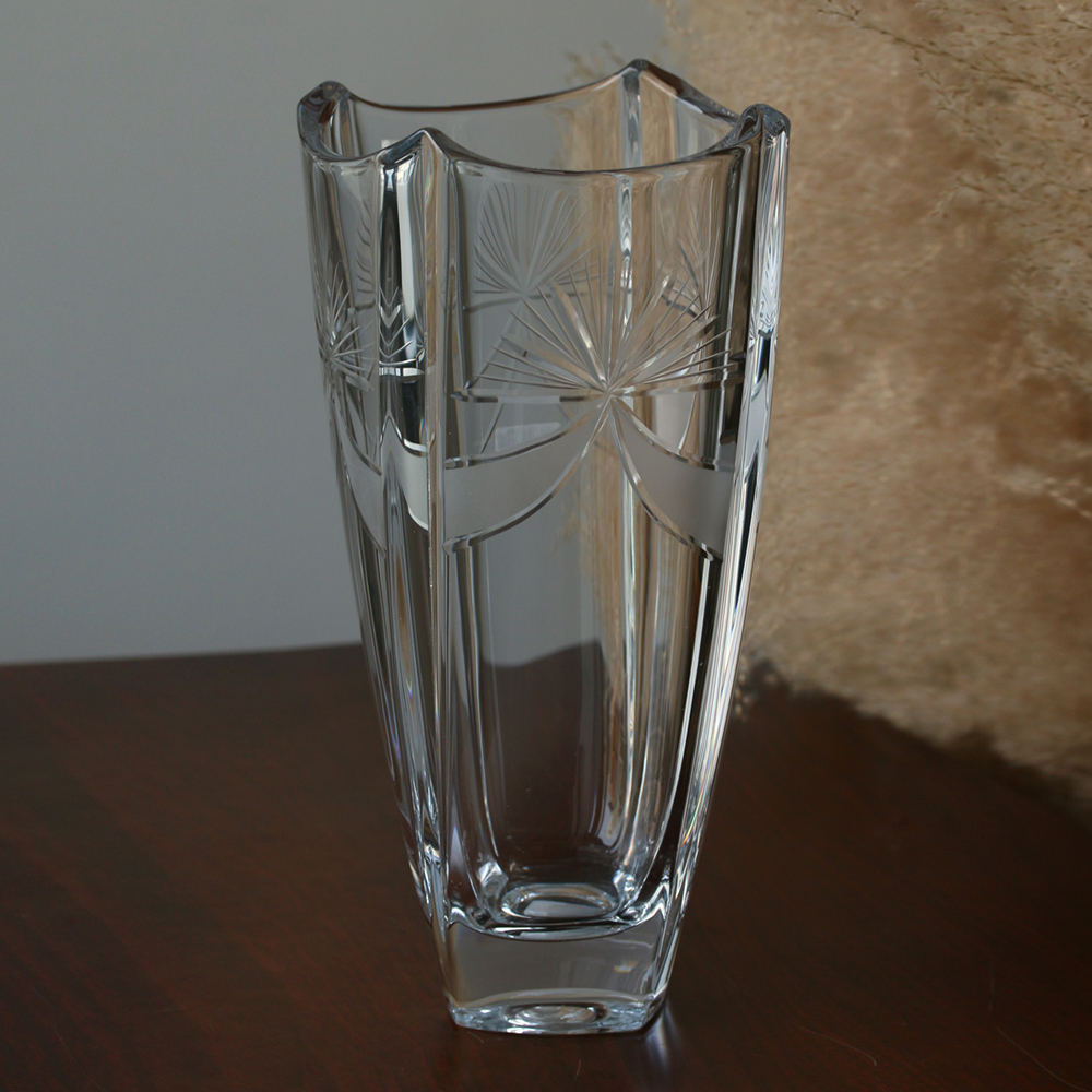 Mẫu bình hoa pha lê Colosseum 133 Mài nơ là một minh chứng tuyệt vời cho khả năng sáng tạo không giới hạn của các nghệ nhân vùng Bohemia. Trên dáng bình Colosseum mang hơi hướng kiến trúc uy nghi, họa tiết mài hình nơ xuất hiện như một điểm chạm dịu dàng, biến món đồ decor trở nên thanh thoát và đầy chất thơ. Được chế tác từ phôi pha lê dày dặn và đầm tay, sản phẩm sở hữu độ trong suốt vĩnh cửu, làm nền cho những nét mài tỏa sáng rực rỡ.