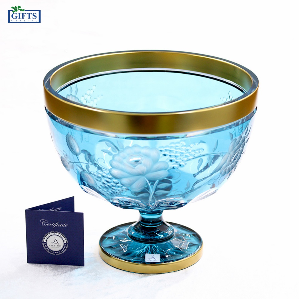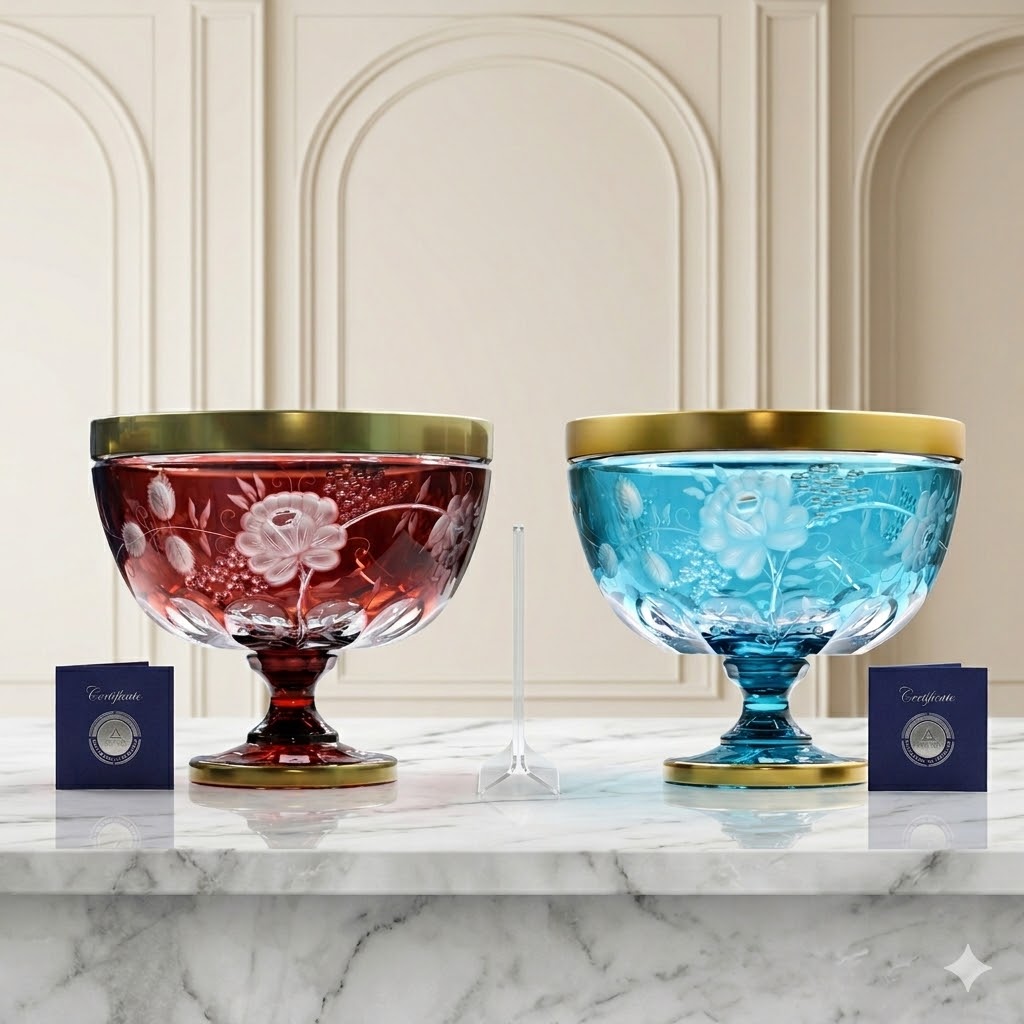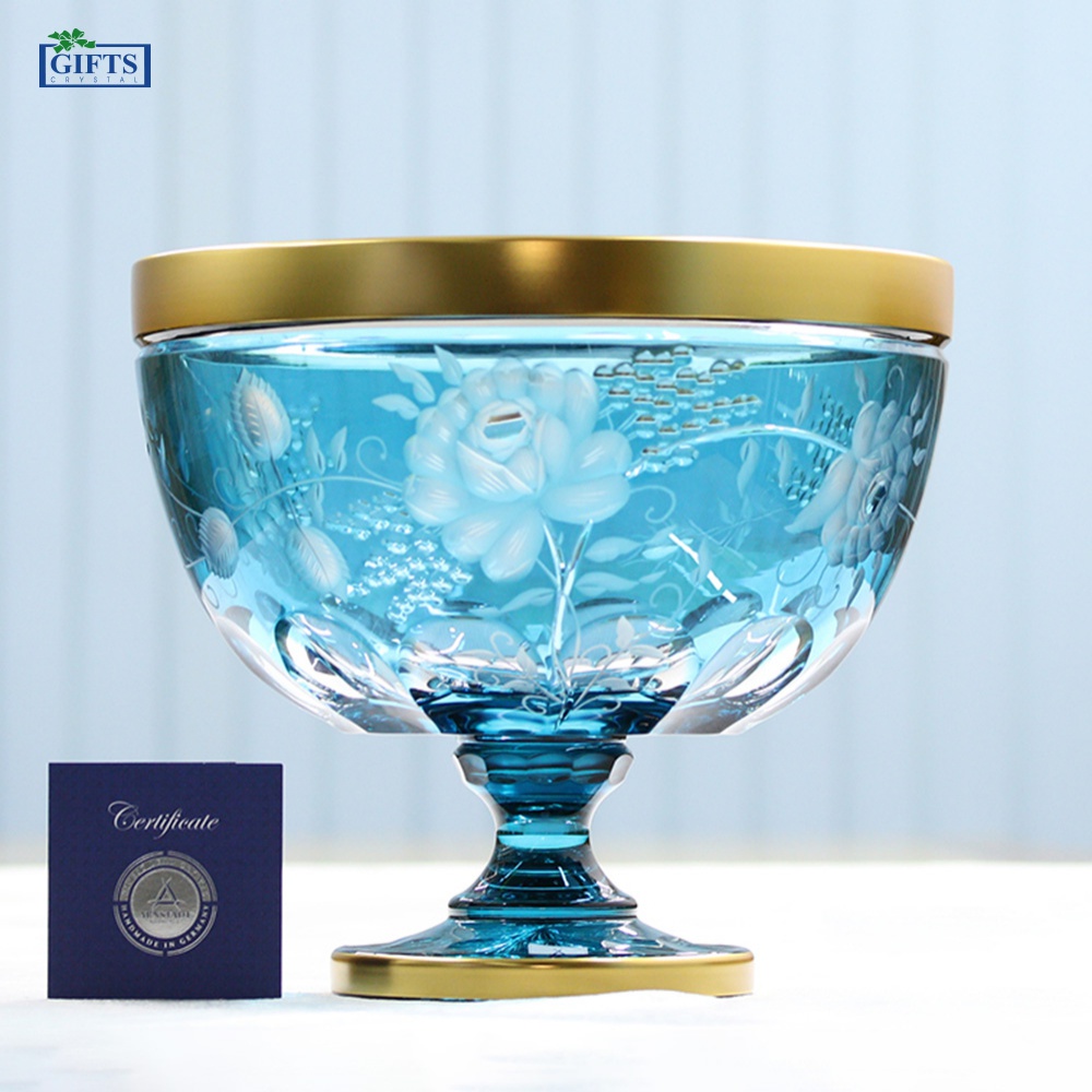 Chiếc đĩa pha lê xanh azur Primerose Gold không chỉ là món đồ trưng bày mà còn là báu vật sưu tập dành cho những tâm hồn yêu nghệ thuật và đam mê phong cách cổ điển châu Âu. Mỗi đường chạm khắc tinh tế và chi tiết dát vàng thủ công trên lớp pha lê trong suốt đều khắc họa một phần huy hoàng của nghệ thuật hoàng gia thuở trước.