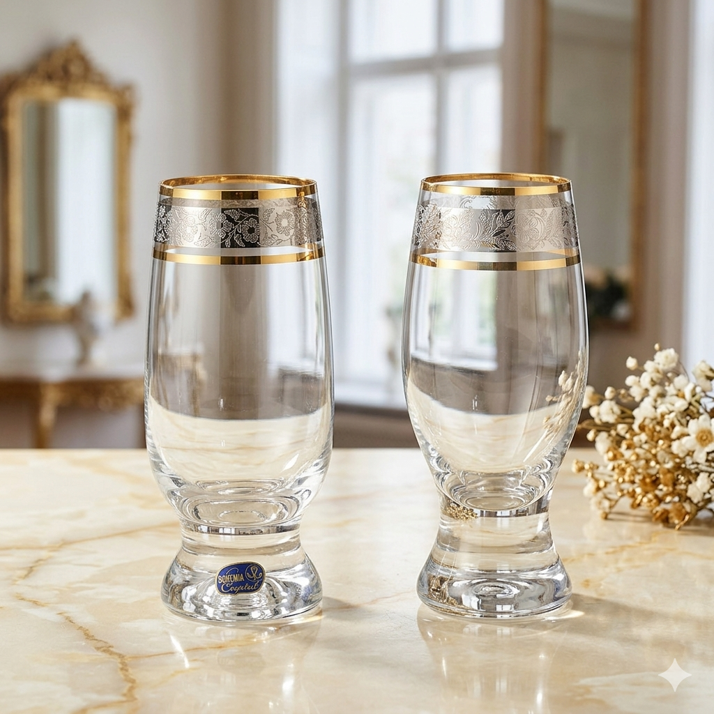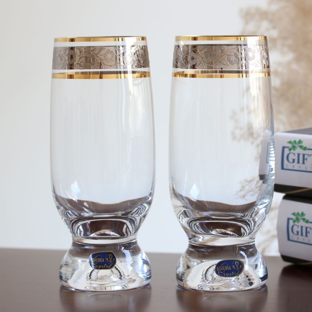 Chất liệu thủy tinh mạ vàng mang lại độ trong suốt tốt, giúp hiển thị rõ màu sắc của đồ uống bên trong. Khi kết hợp với chi tiết vàng, sản phẩm tạo cảm giác cân bằng giữa tính thẩm mỹ và công năng sử dụng.