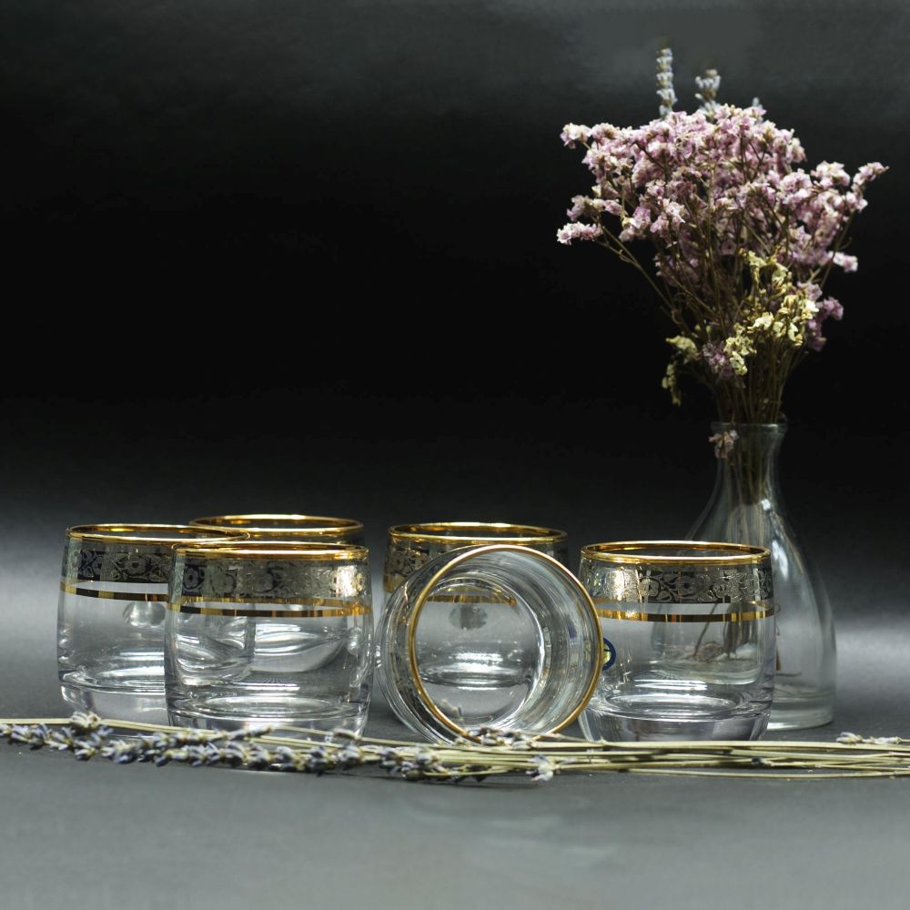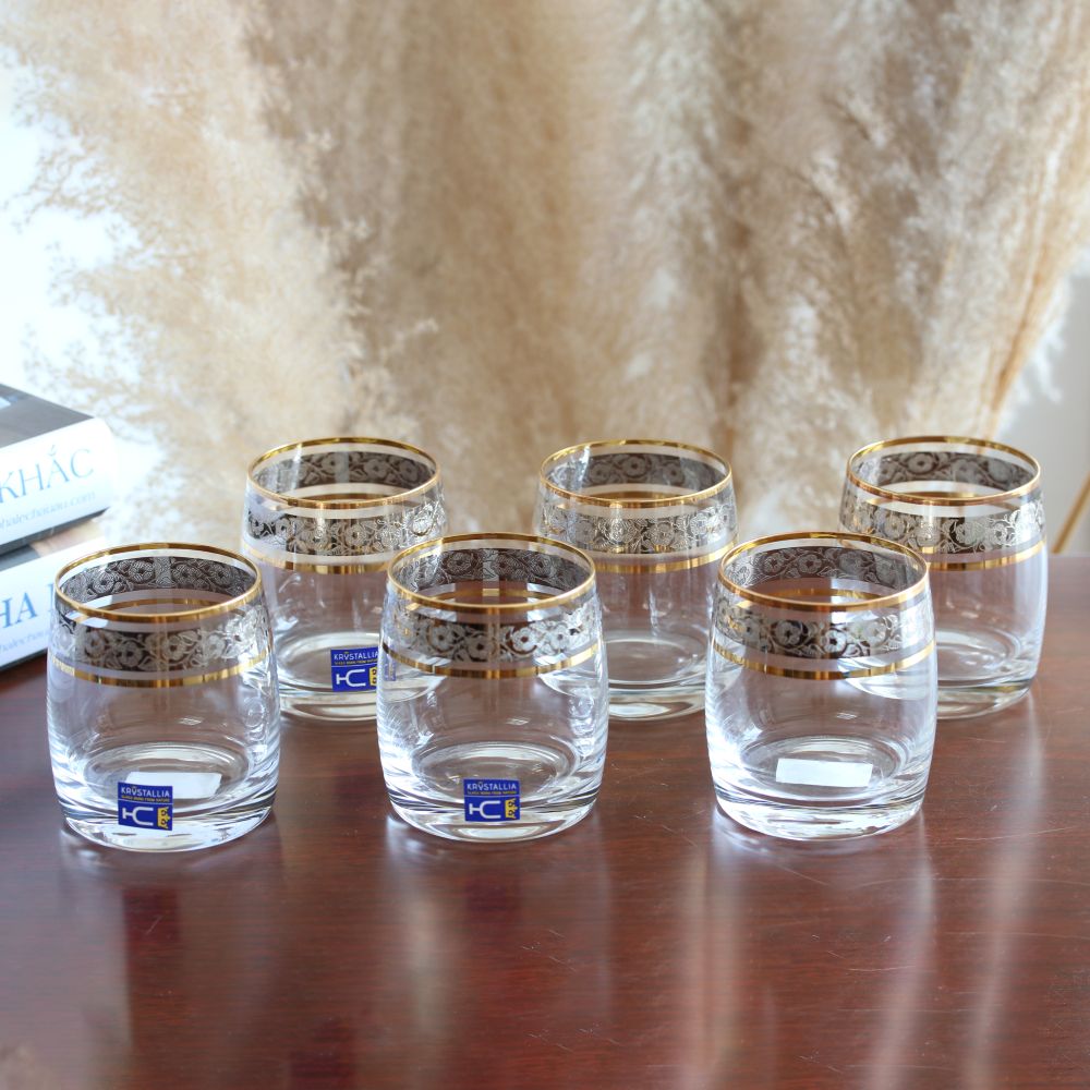 Điểm nhấn của ly nằm ở phần viền mạ vàng và họa tiết trang trí chạy quanh miệng ly. Chi tiết này tạo cảm giác rất sang trọng và nổi bật, đặc biệt khi rót rượu vào ly, màu vàng hổ phách của rượu kết hợp với viền vàng tạo nên tổng thể rất đẹp và ấm. Đây là lý do các dòng ly whiskey mạ vàng thường được sử dụng trong những không gian nội thất gỗ, bàn làm việc hoặc bàn tiếp khách.