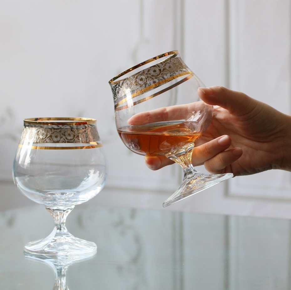 - Phòng cigar & whisky lounge: Kết hợp với rượu vang đỏ hoặc rượu mạnh, ly pha lê vẽ vàng nâng tầm phong cách quý ông lịch lãm.