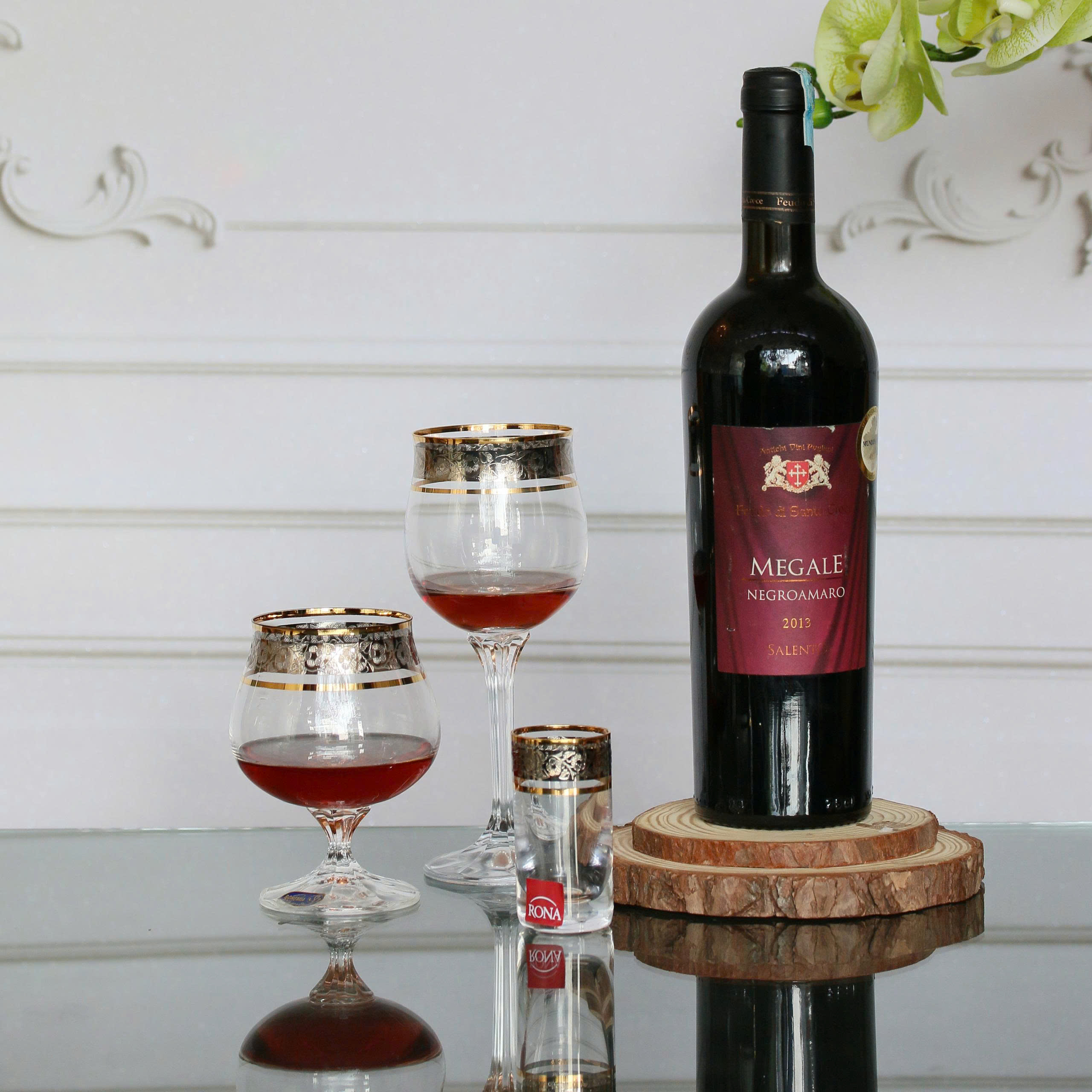 Bộ ly vẽ vàng Platin Diana của Bohemia là hiện thân hoàn hảo của sự sang trọng và tinh tế. Sản phẩm được chế tác từ thủy tinh trắng cao cấp, bề mặt được trang trí bằng những dải vàng Platin quý giá, khắc họa họa tiết hoa văn hoàng gia lộng lẫy. Khi kết hợp với rượu vang, chiếc ly không chỉ làm nổi bật sắc màu rượu mà còn mang lại trải nghiệm thị giác đầy cảm hứng – như đang thưởng thức rượu trong một khung cảnh yến tiệc châu Âu cổ điển.