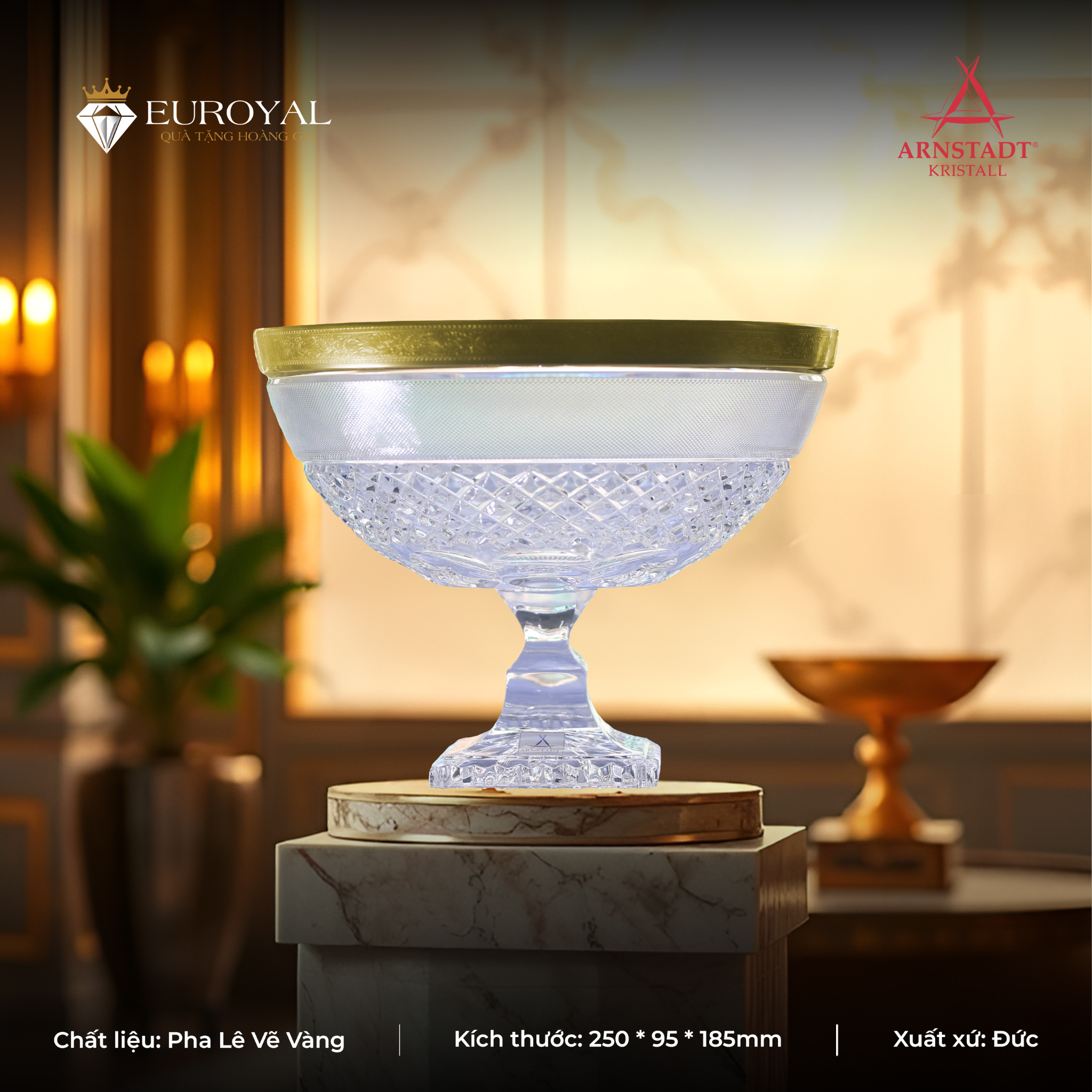 Việc tìm kiếm một địa chỉ uy tín giữa thị trường "vàng thau lẫn lộn" là điều không dễ dàng. Euroyal tự hào là đơn vị tiên phong phân phối các dòng pha lê, thủy tinh cao cấp chính hiệu từ vùng Bohemia danh tiếng của Cộng hòa Séc.