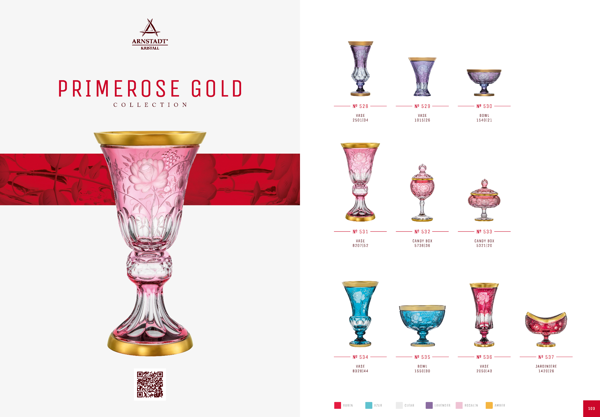 Bên cạnh dòng pha lê trong suốt, dòng bình hoa pha lê màu Arnstadt là niềm tự hào của hãng. Sử dụng công nghệ pha trộn oxit kim loại quý hiếm, Arnstadt đã tạo ra những sắc thái độc bản như đỏ Ruby, xanh Cobalt hay tím Amethyst. Màu sắc này không nằm ở lớp phủ bên ngoài mà nằm trong chính cốt tủy của khối pha lê, đảm bảo sự bền bỉ và rực rỡ vĩnh cửu theo thời gian.