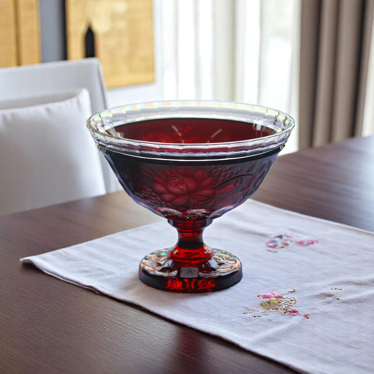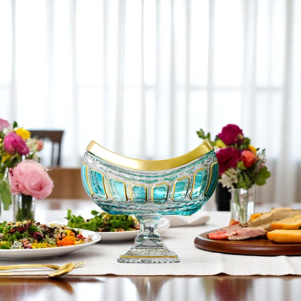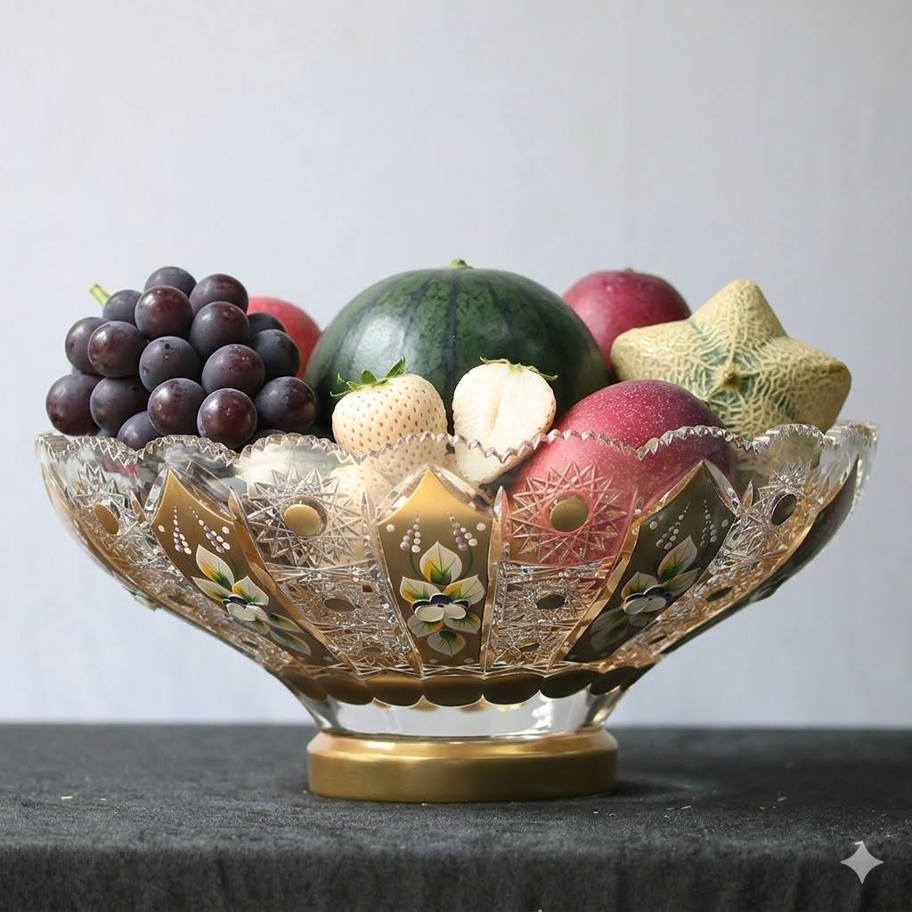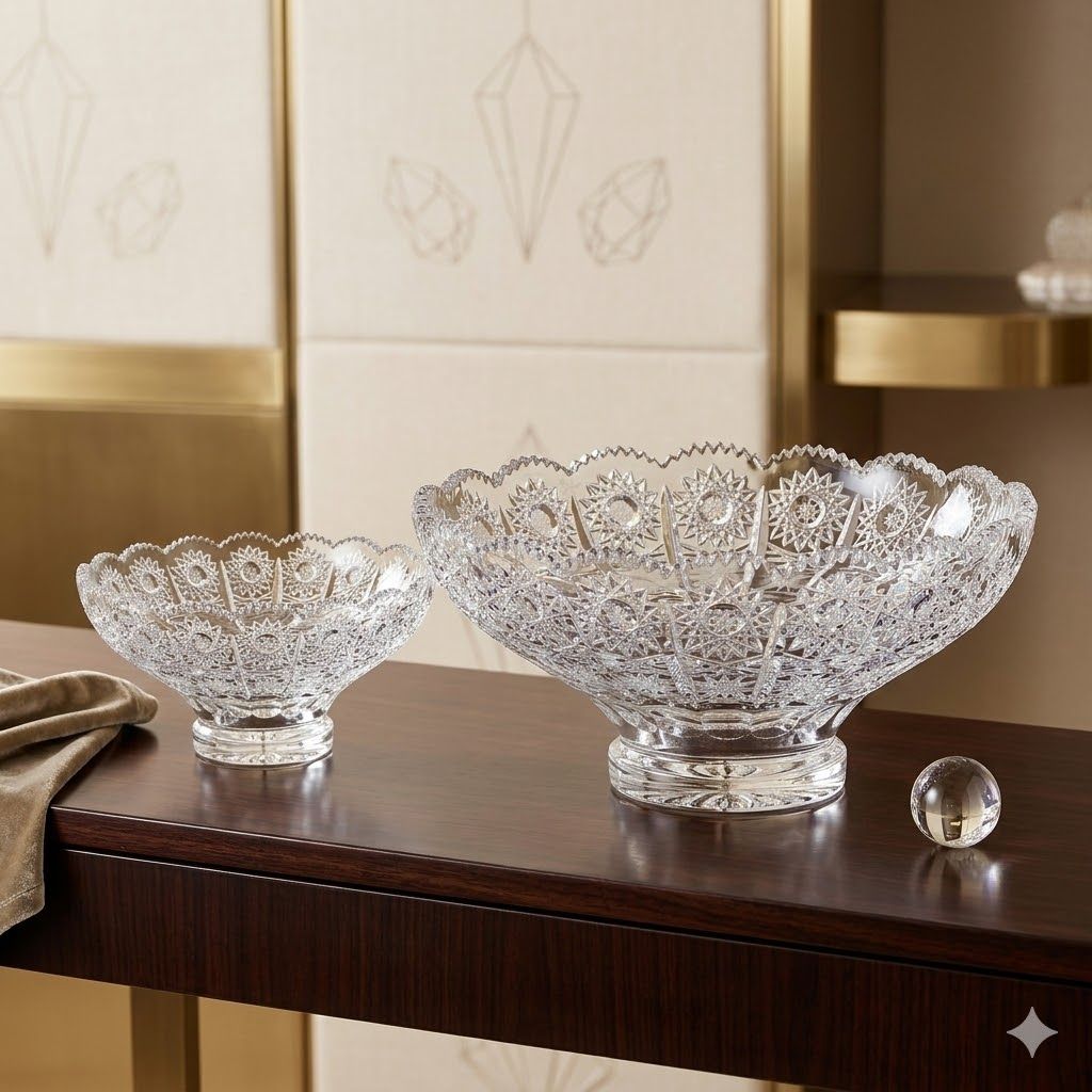 Dù là bàn tiệc Penthouse hiện đại hay tủ kệ phòng khách biệt thự tân cổ điển, một chiếc đĩa quả pha lê với những đường cắt sâu (Deep-cut) luôn biết cách tỏa sáng và thu hút mọi ánh nhìn.