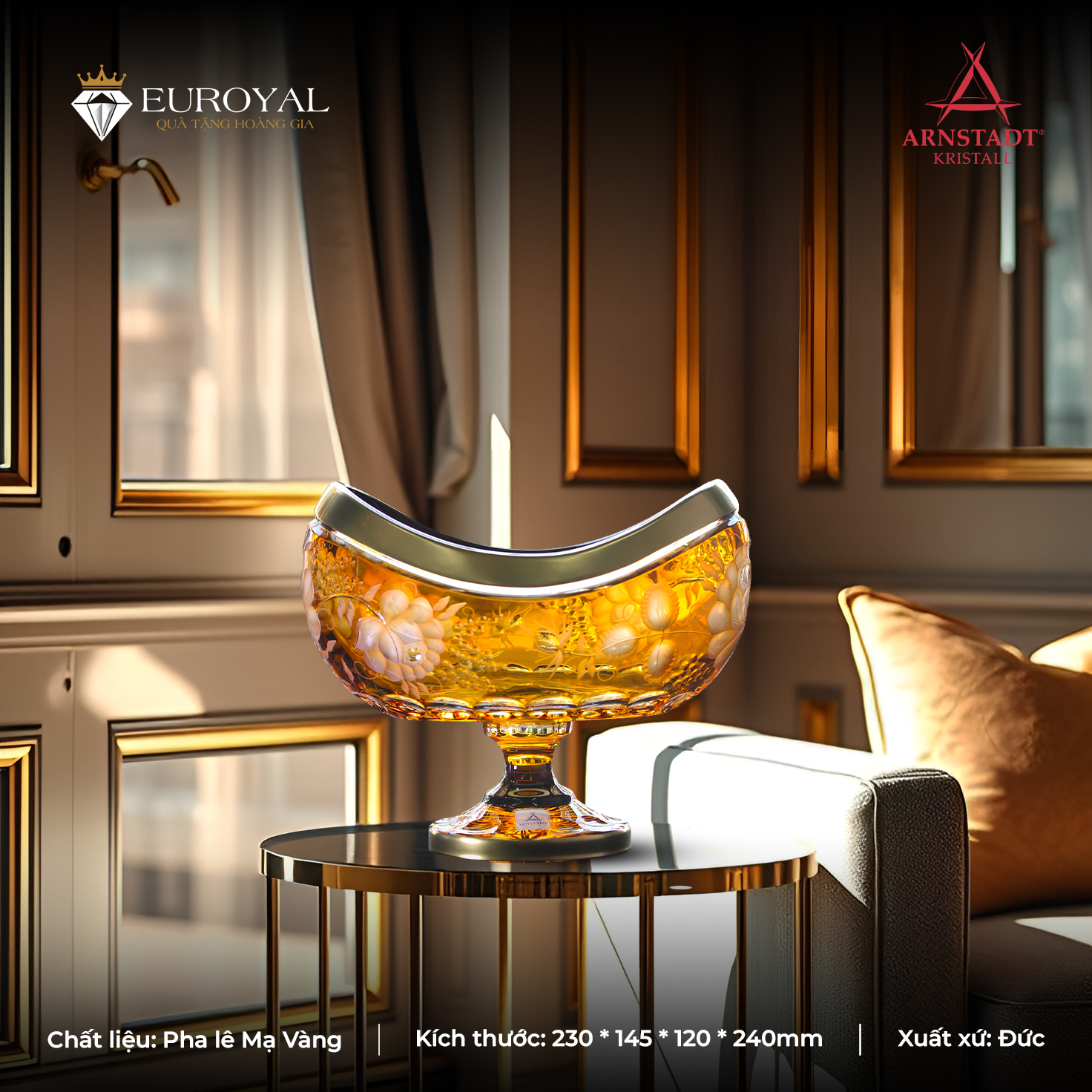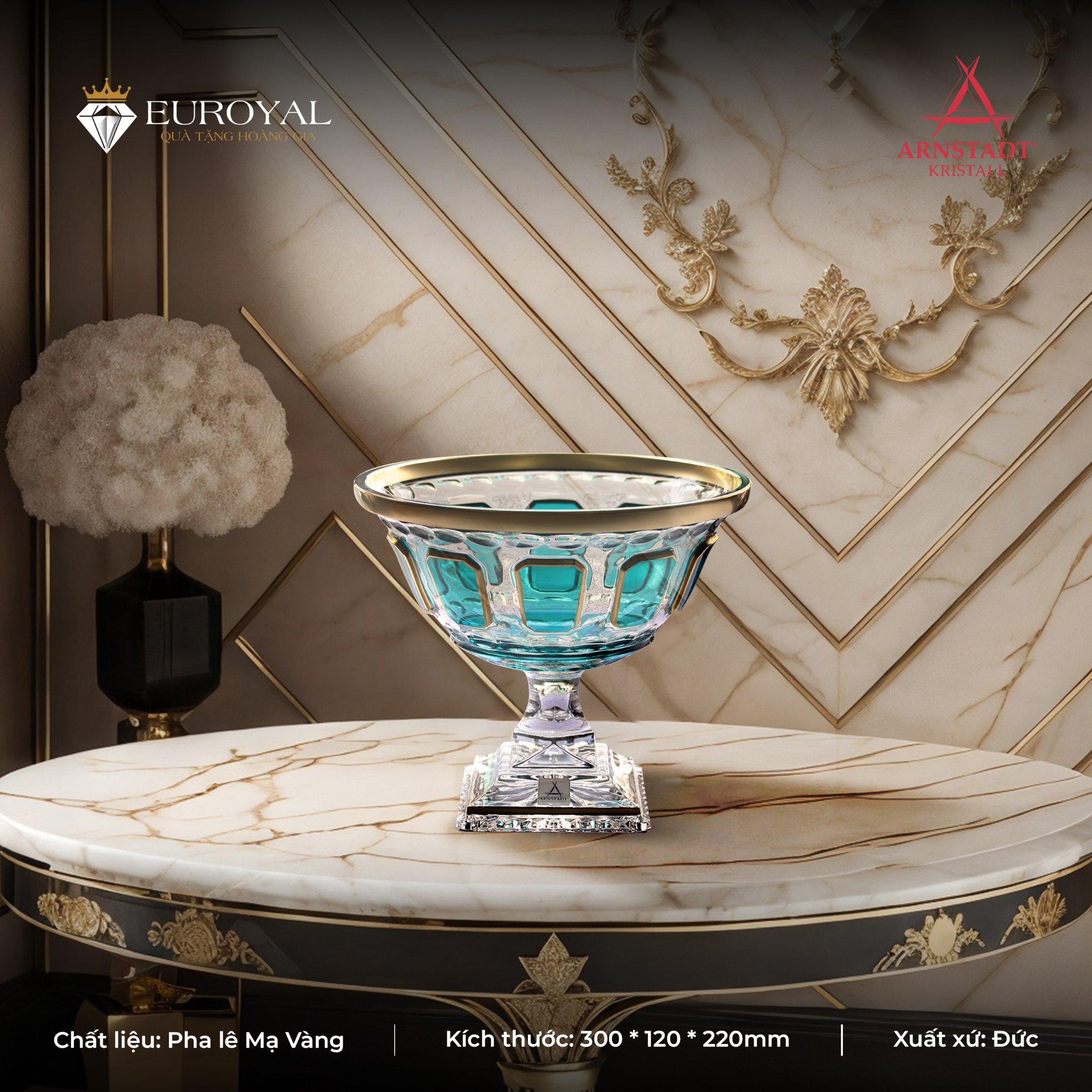 Euroyal tự hào là đơn vị phân phối chính ngạch các dòng đĩa pha lê sang trọng từ thương hiệu Arnstadt Kristall danh giá. Chúng tôi cam kết: